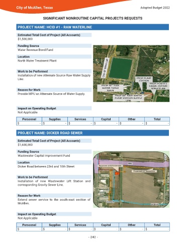 SIGNIFICANT NONROUTINE CAPITAL PROJECTS REQUESTS