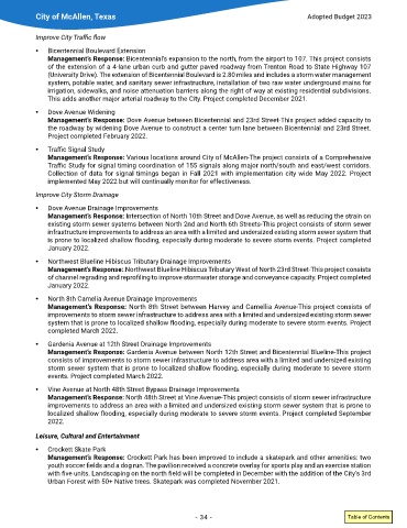 Management’s Response: Various locations around City of McAllen-The project consists of a Comprehensive