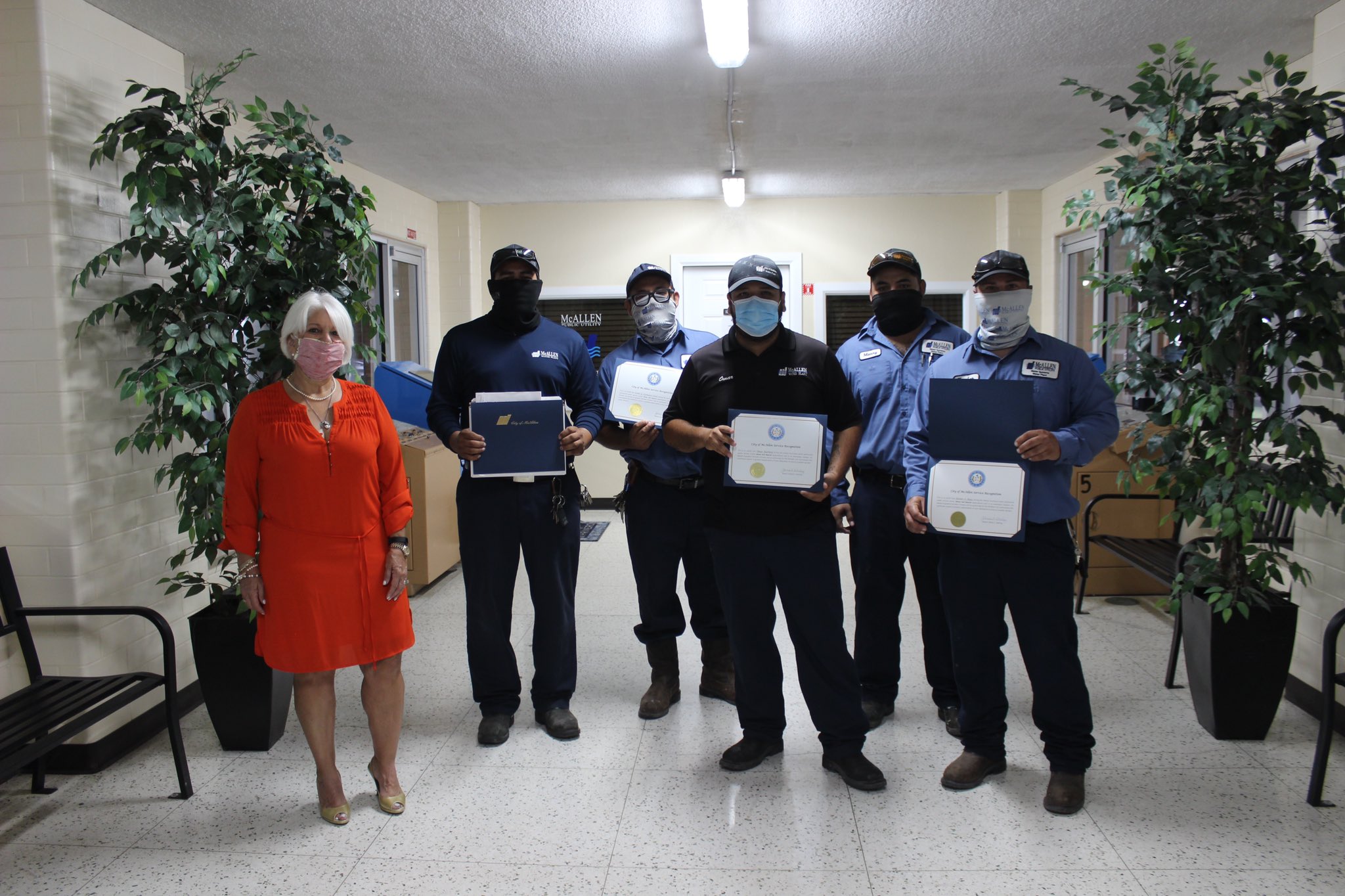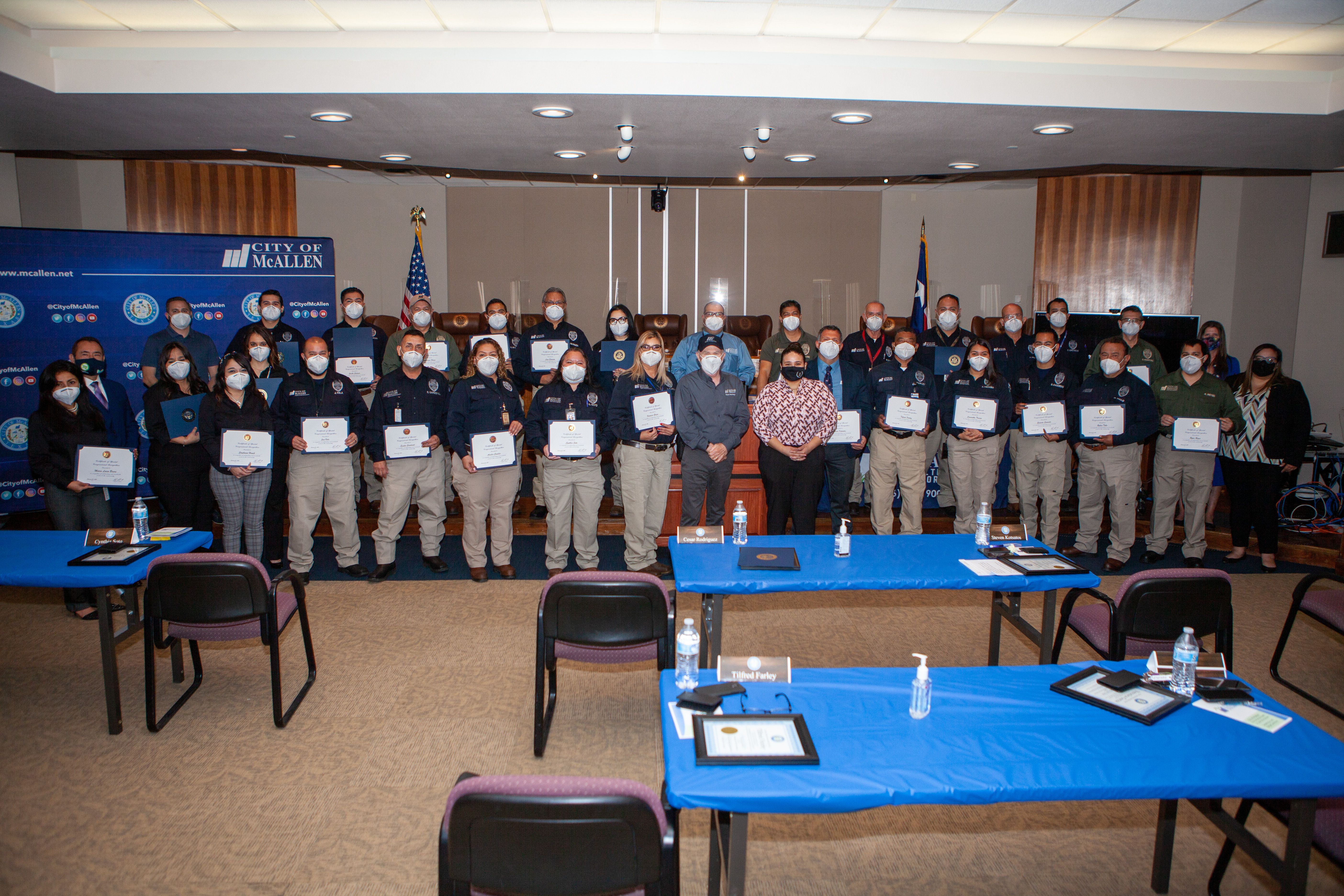 25 of McAllen’s environmental health specialists (food inspectors), state-licensed sanitarian and code enforcement officers took the official oath for their Badge. These committed individuals help keep our community safe and healthy on a daily basis. The City of McAllen Environmental Health & Code Enforcement Department has conducted over 26,900+ inspections in Fiscal Year 2019-2020. These are a combination of COVID-19 compliance cases, Food Inspections, Weedy Lots, Illegal Dumping complaints, and Mosquito Control Cases to name a few. “The ceremony and the sworn oath brings professionalism and respect to their positions and is another step in modernizing the McAllen Environmental Health & Code Enforcement Department,” said Steven Kotsatos, R.S. director of the department.